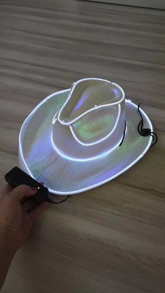 Stand out at your next party with this LED Light Up Neon Cowboys! Featuring luminous LED lights, this sparkling hat adds a fun and eye-catching touch to any outfit. Perfect for dancing, Halloween costumes, birthday parties, or as a unique accessory for your cowboy or cowgirl look. Available in a variety of vibrant colors, this hat is one size fits most, making it a versatile addition to any wardrobe.